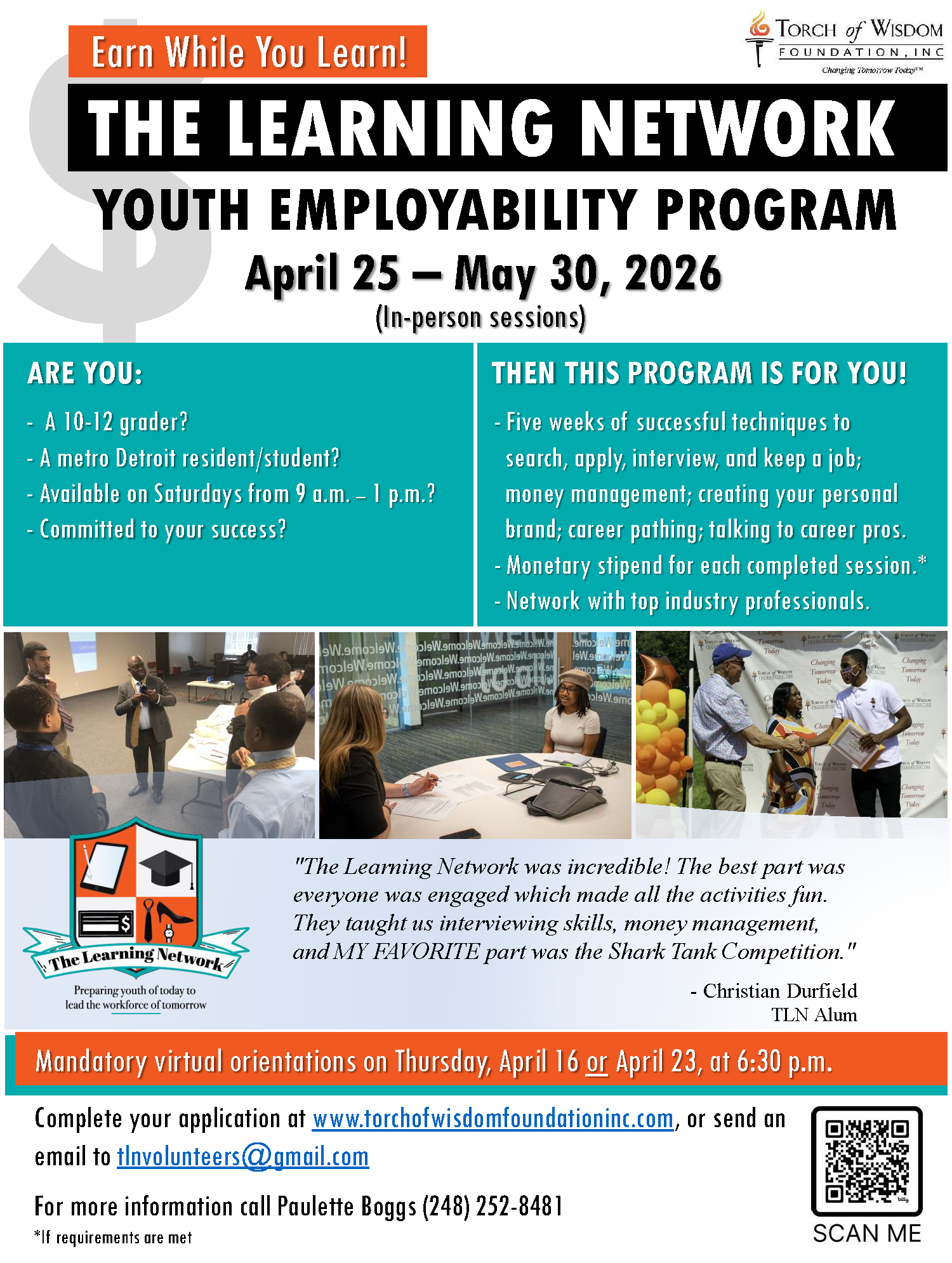 Torch of Wisdom Foundation strives to positively impact the lives of Southeastern Michigan youth and families by delivering academic, cultural, economic, and social programs that create boundless possibilities for future growth and development. We partner with, support and encourage those within the community who share our goal of Changing Tomorrow Today™.